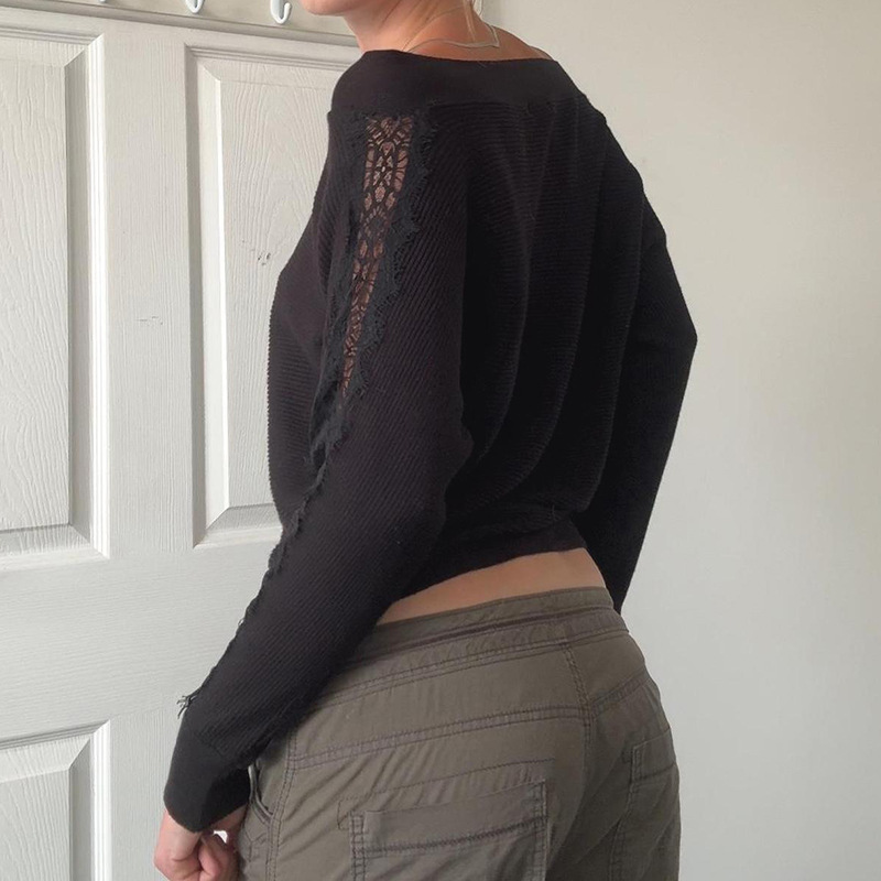 Enhance your wardrobe with our Black Off-Shoulder Jumper featuring lace sleeves, a stylish mix of comfort and sophistication.