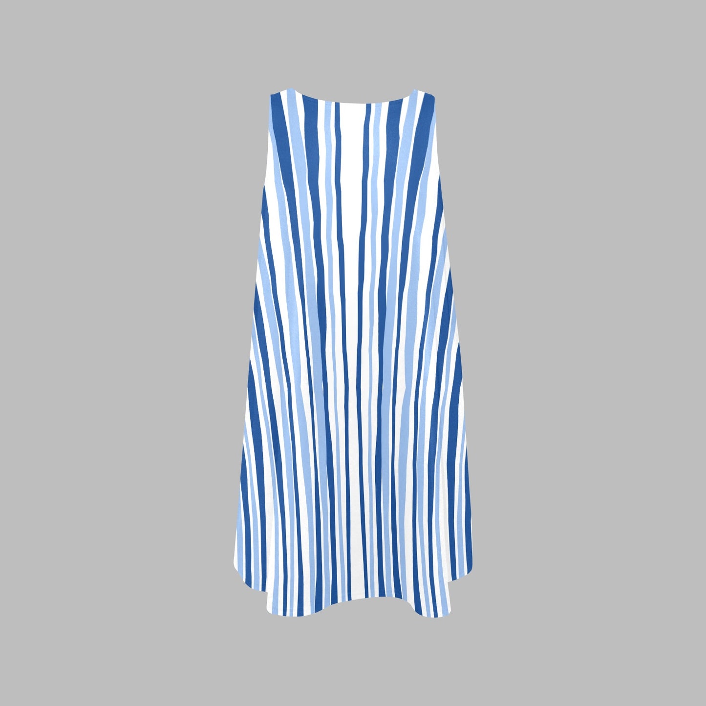 Women's Blue Stripe Sleeveless A-Line Dress with Pockets