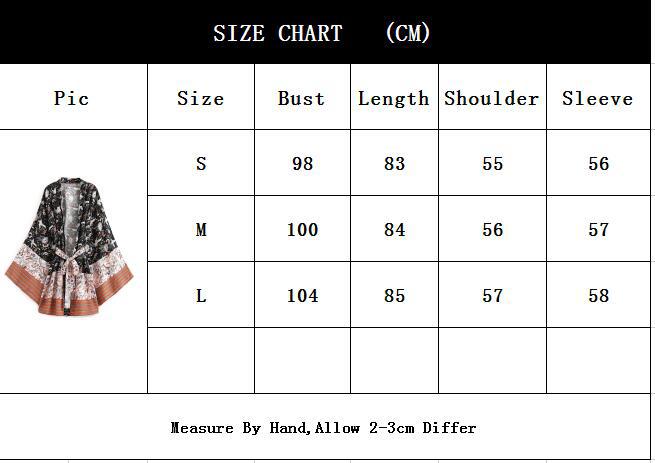 Women's Bohemian Style Black Pink Floral Bird Print Kimono Robe