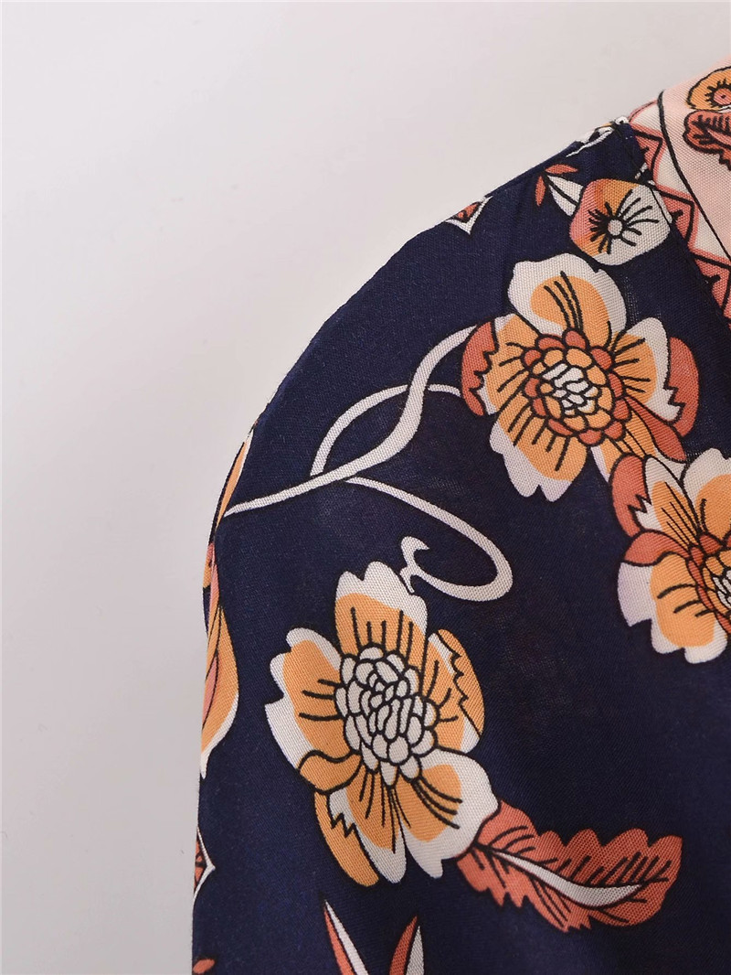 Women's Bohemian Style Navy Peach Flower Print Kimono Robe