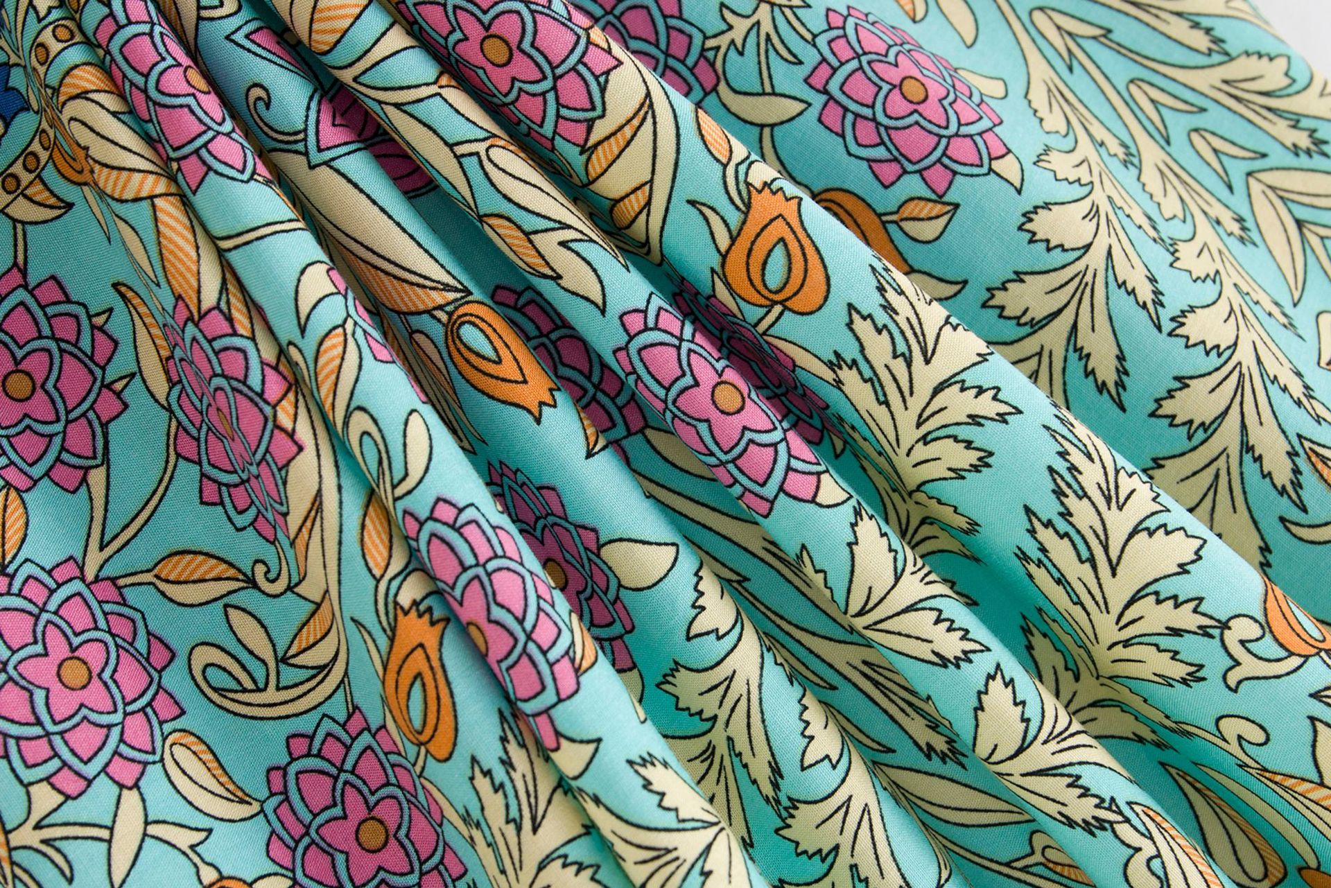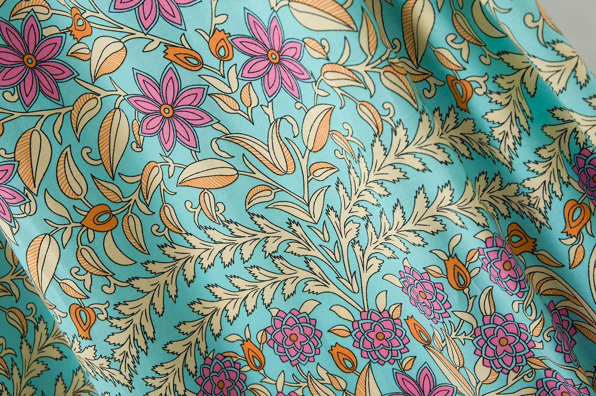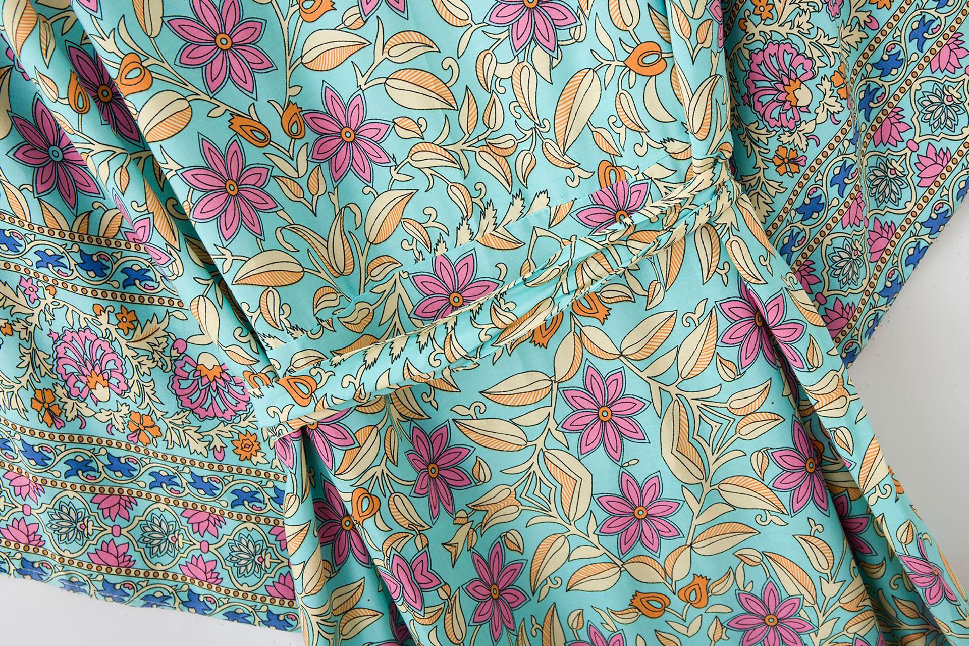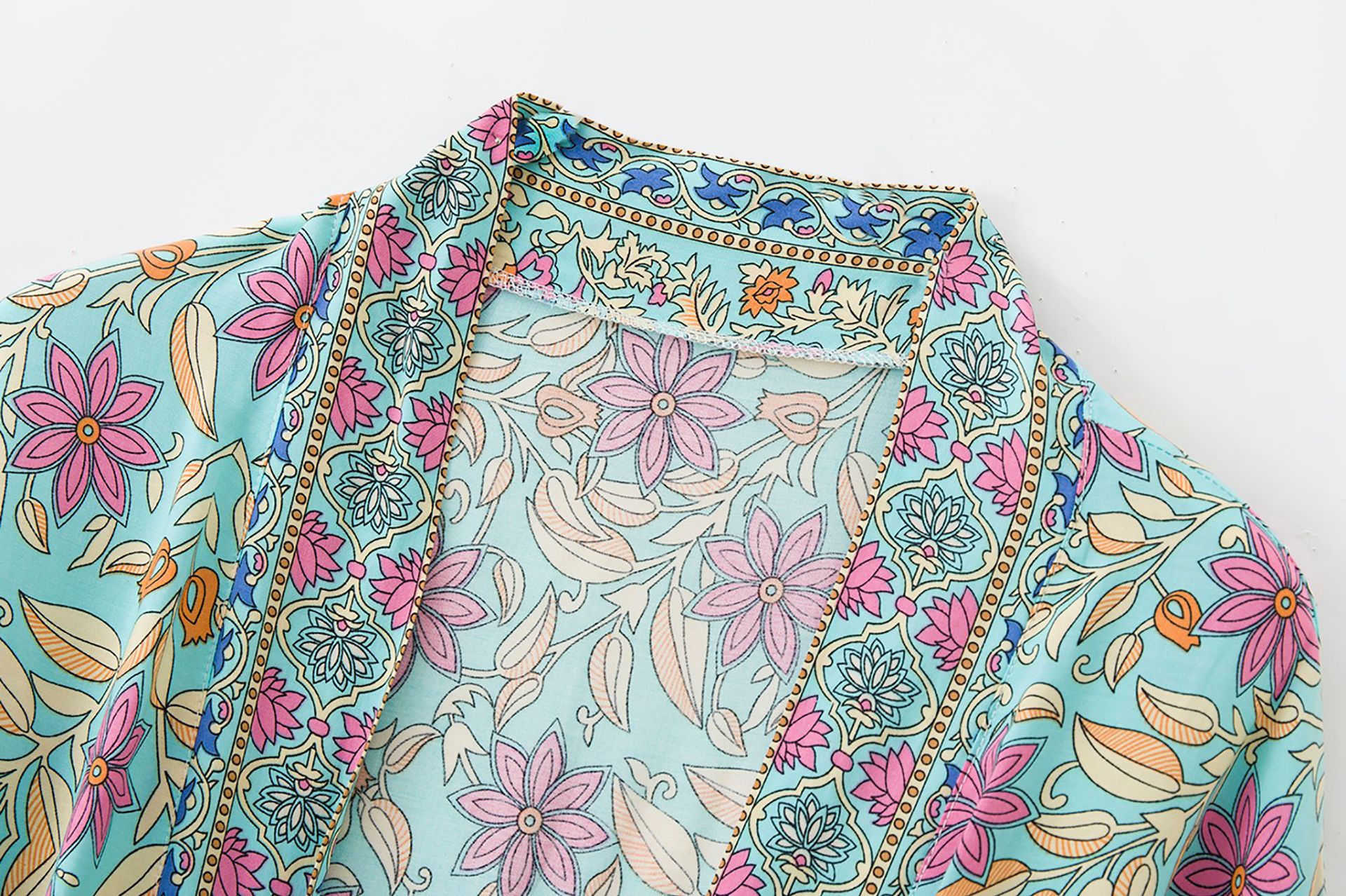 Women's Bohemian Style Turquoise Pink Floral Print Kimono Robe