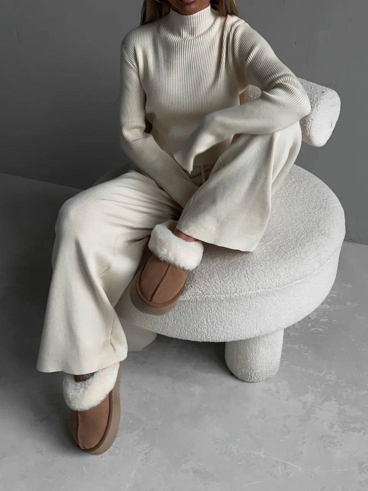 Experience ultimate comfort and style with our Women's Solid Colour Top and Trousers Two Piece Set!