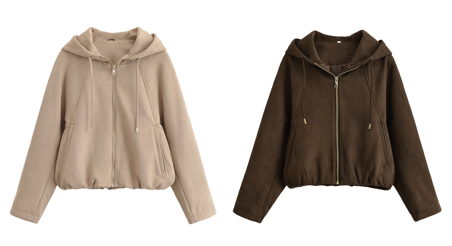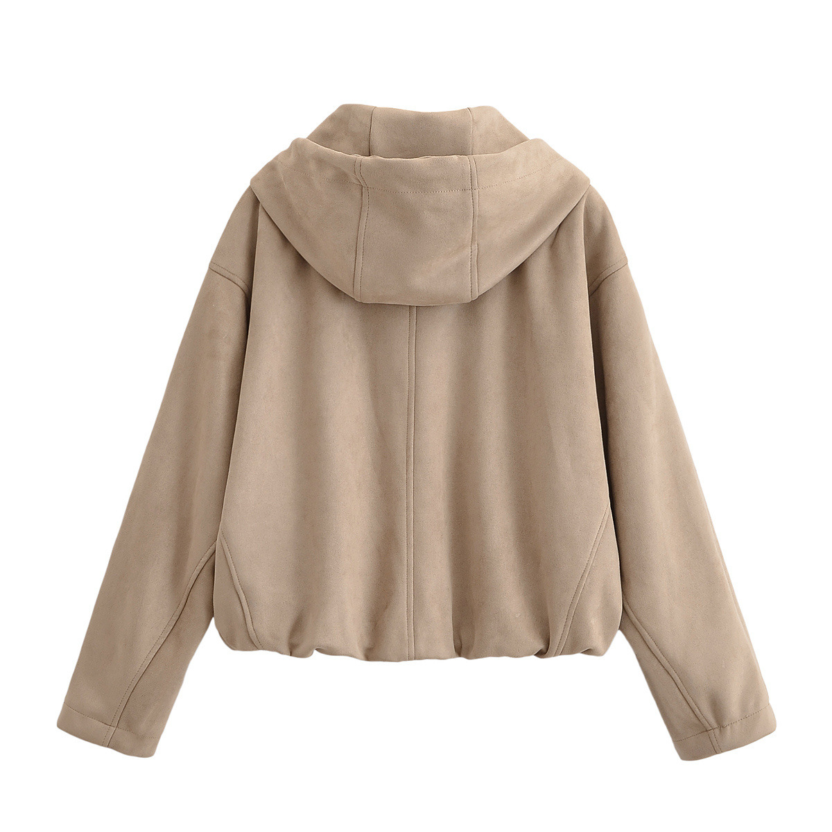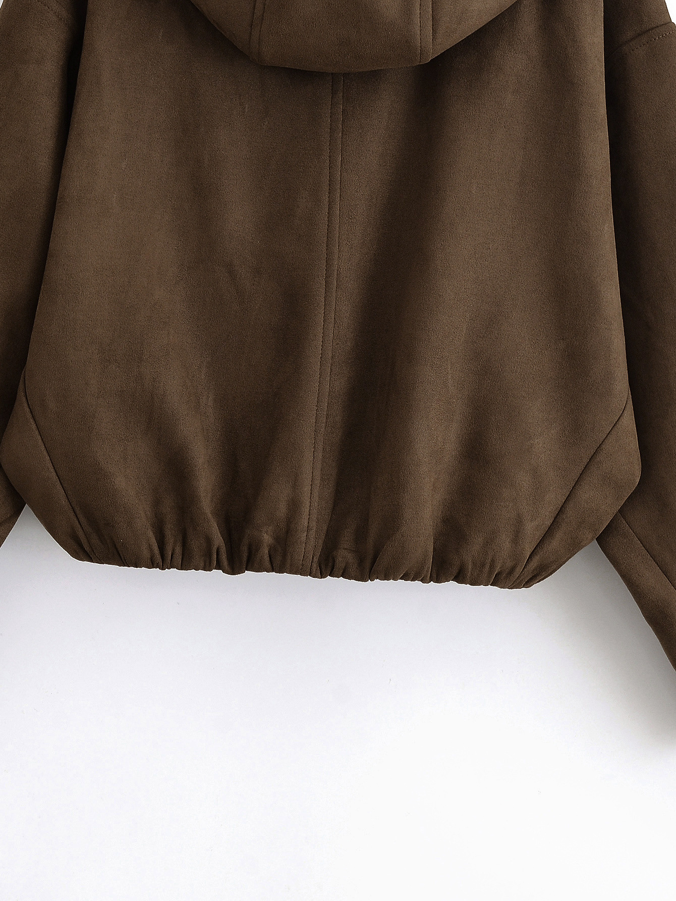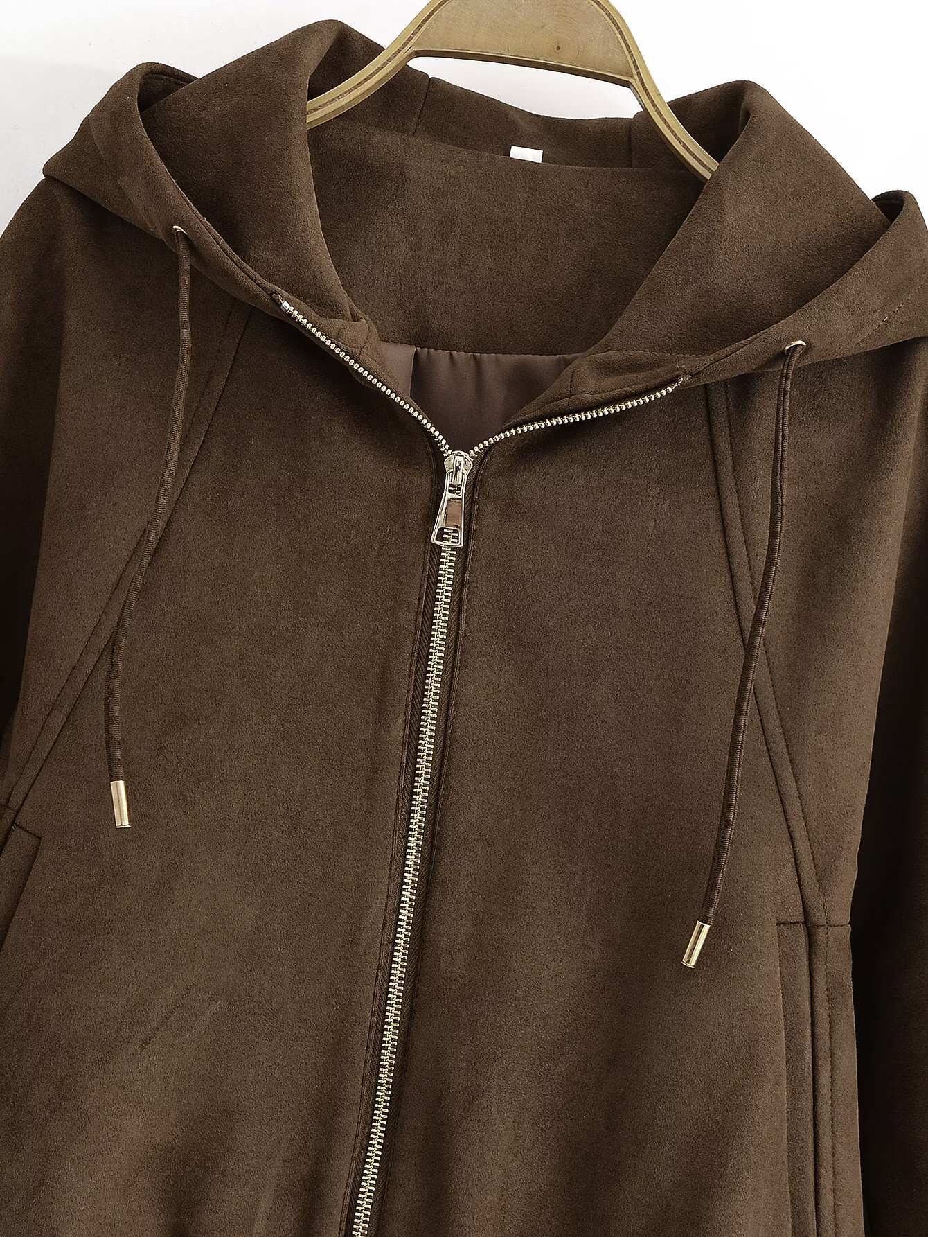 Effortlessly enhance your wardrobe with our Faux Suede Hooded Jacket. Made from ultra-soft faux suede, it delivers a smooth, luxurious feel. This versatile jacket is designed for comfort with a relaxed fit, full-length sleeves, and a front zip closure.