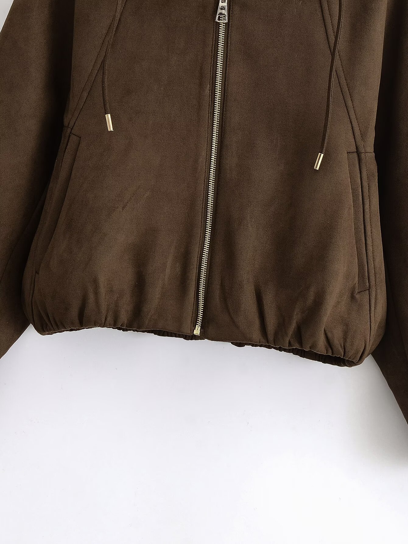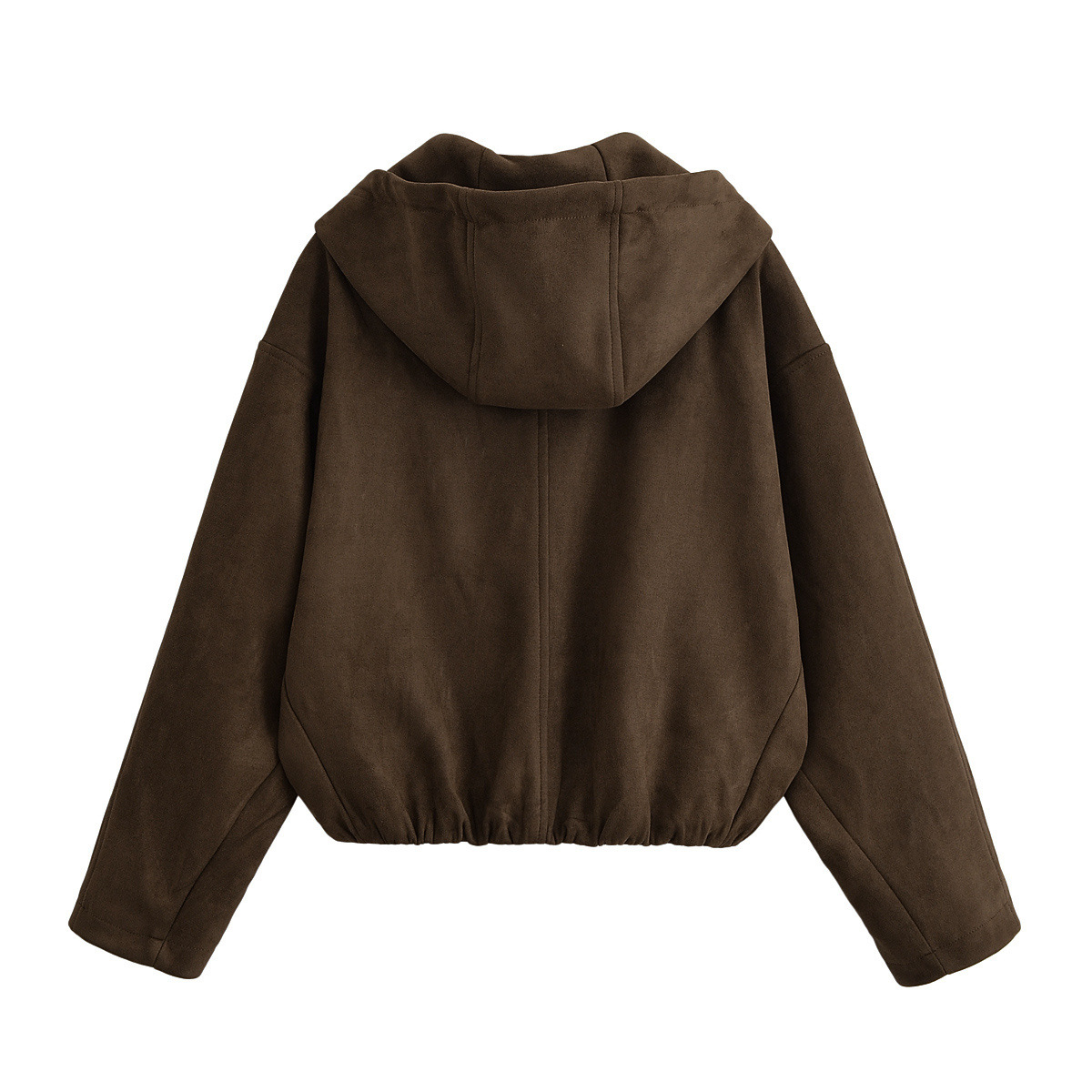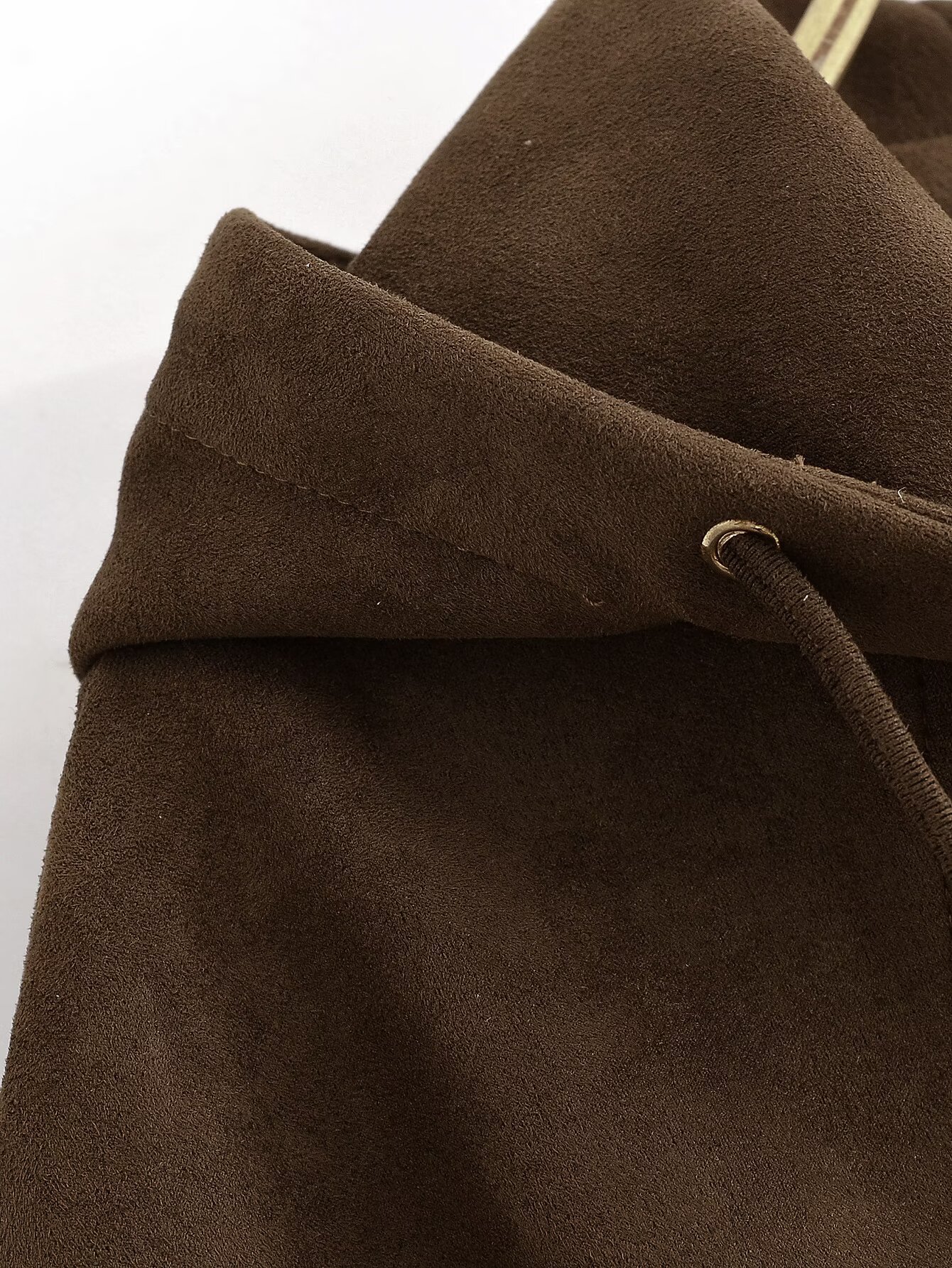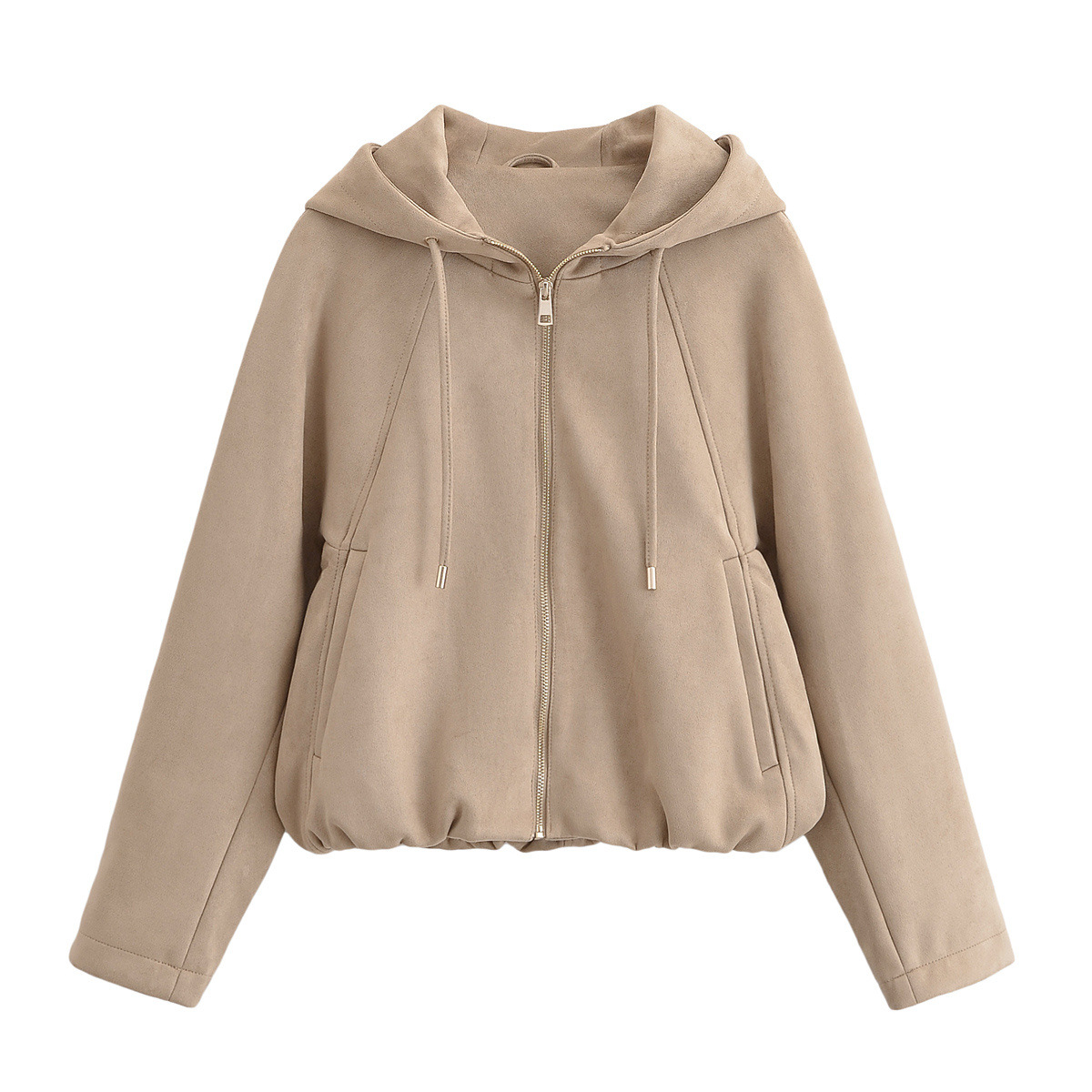 Effortlessly enhance your wardrobe with our Faux Suede Hooded Jacket. Made from ultra-soft faux suede, it delivers a smooth, luxurious feel. This versatile jacket is designed for comfort with a relaxed fit, full-length sleeves, and a front zip closure.