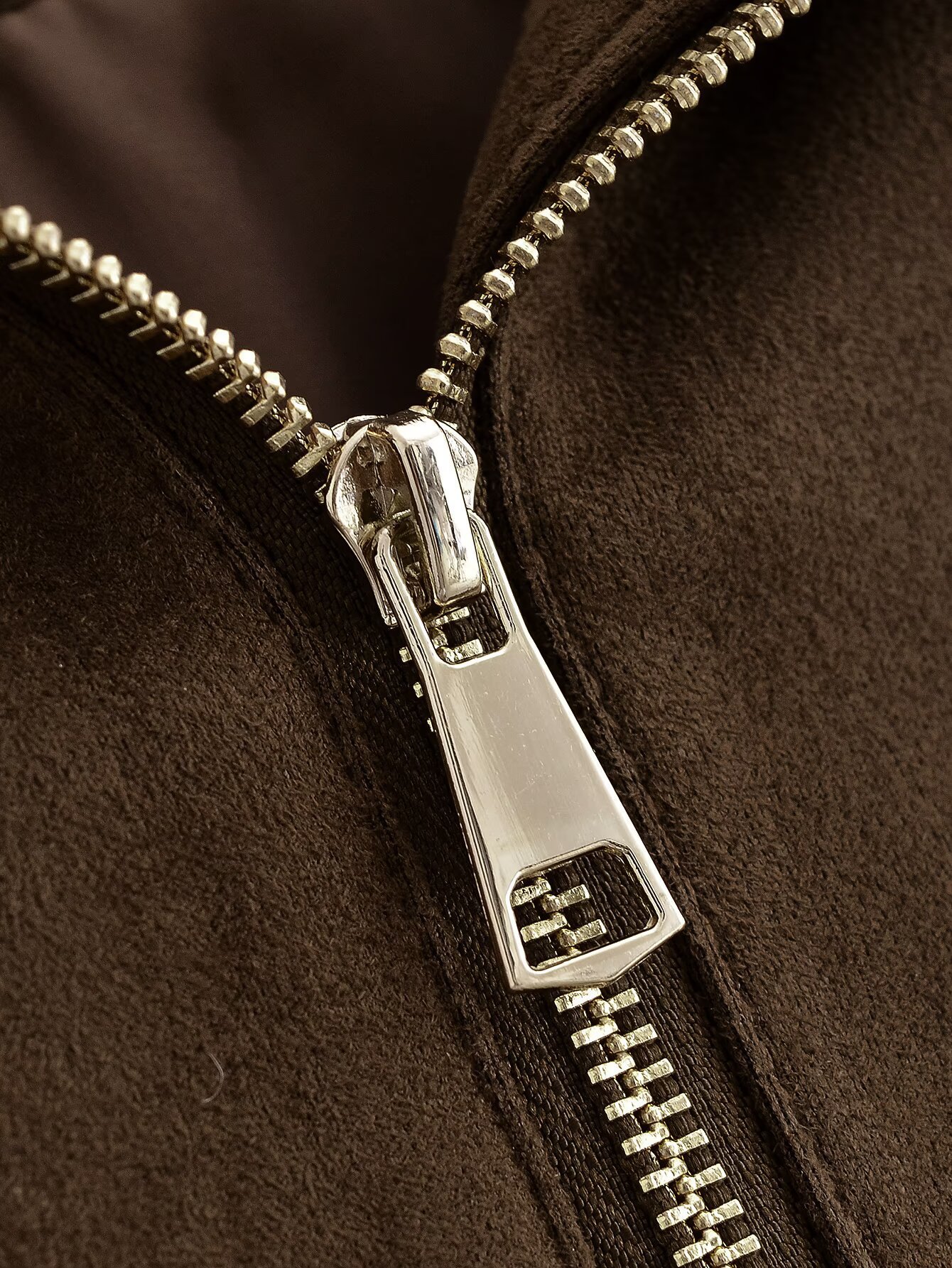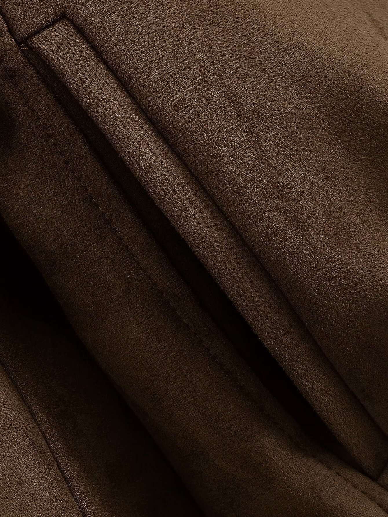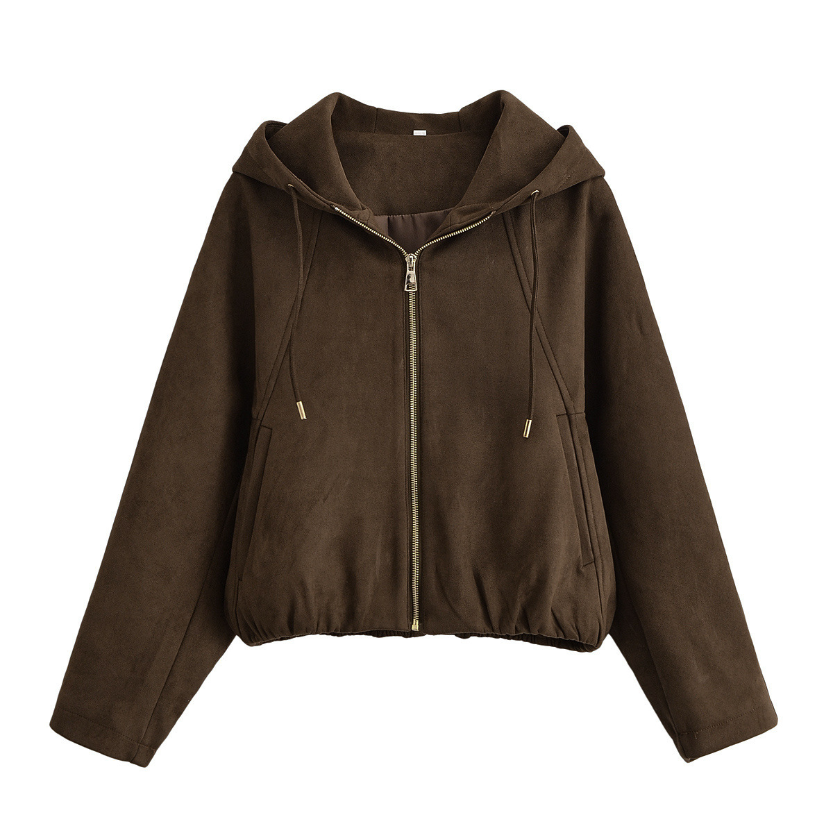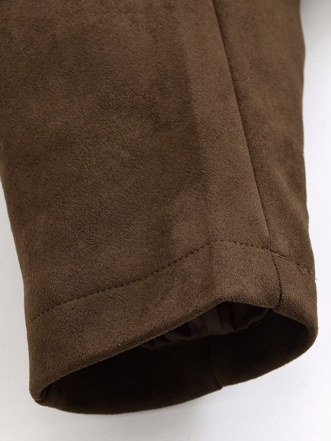 Effortlessly enhance your wardrobe with our Faux Suede Hooded Jacket. Made from ultra-soft faux suede, it delivers a smooth, luxurious feel. This versatile jacket is designed for comfort with a relaxed fit, full-length sleeves, and a front zip closure.