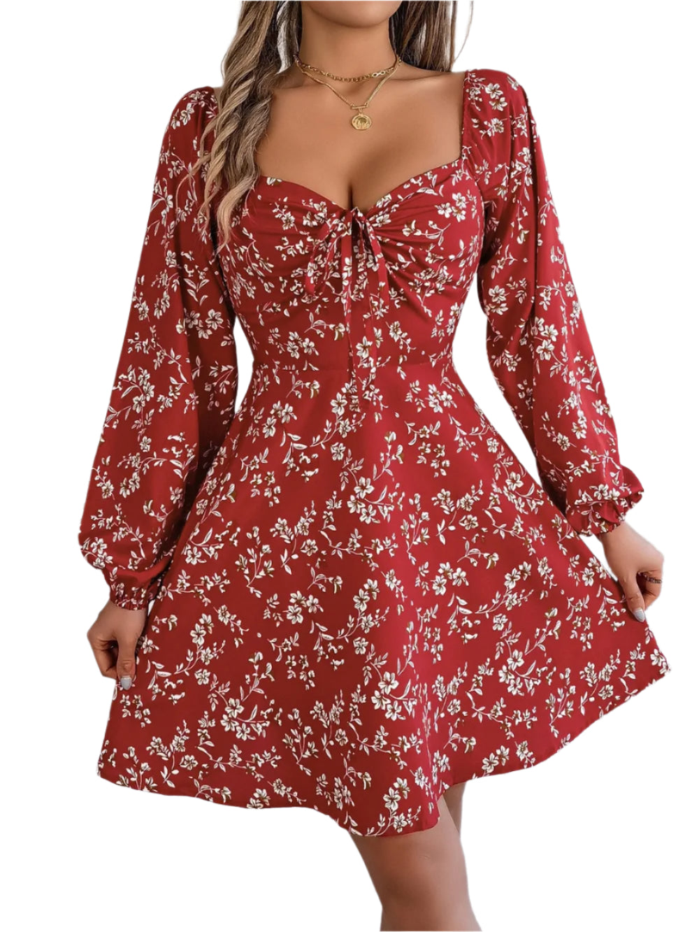 This Women's Floral Print Sweetheart Neck Long Sleeve Mini Dress is the perfect combination of style and comfort.