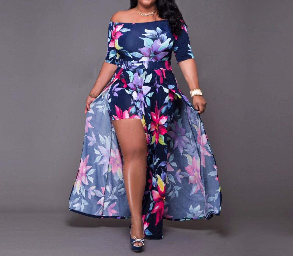 Indulge in a playful, yet chic look with this Women's Plus Size Floral Print Romper Jumpsuit!