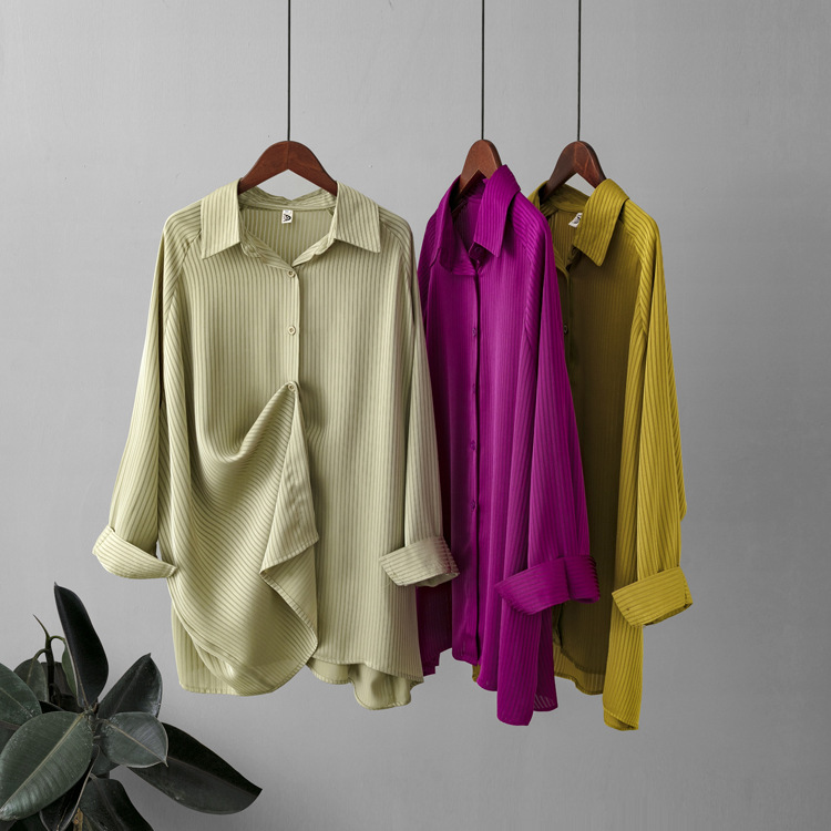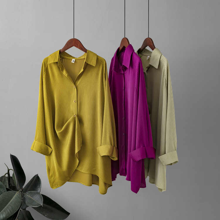 Women's Plus Size Loose Fitting Blouse Long Sleeve Button Front Shirt
