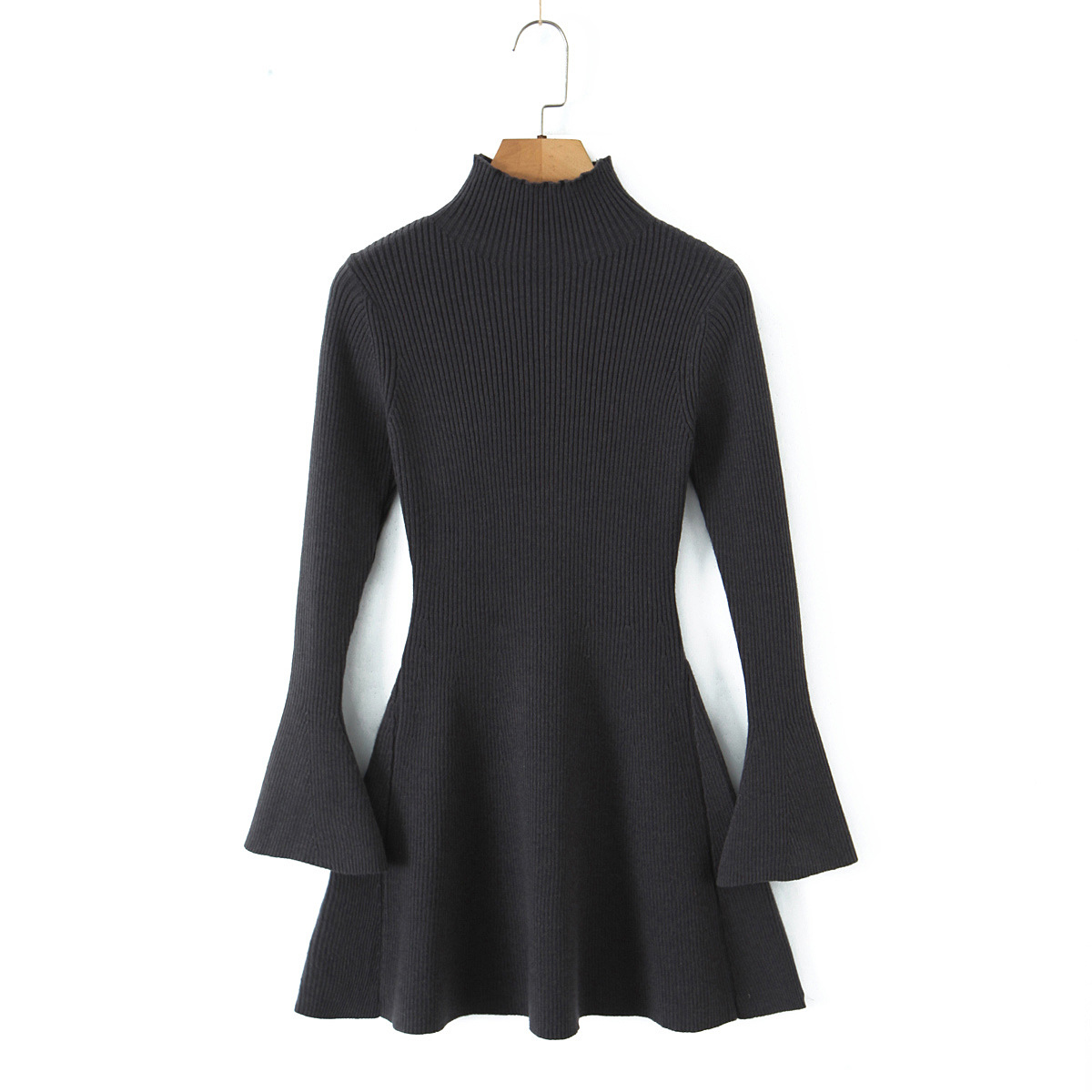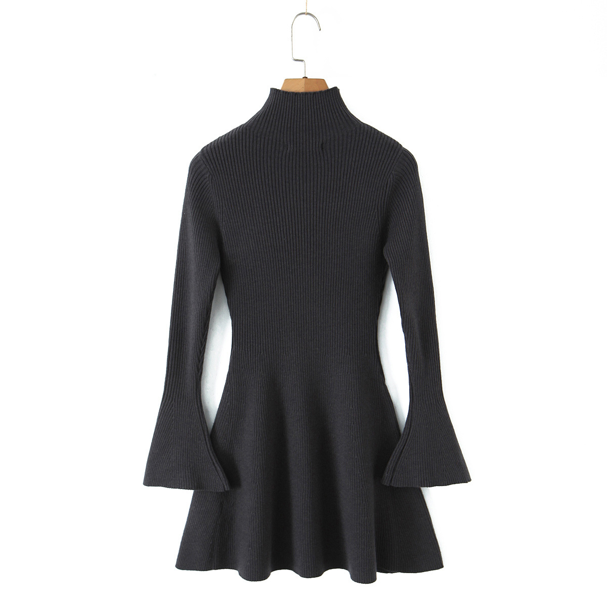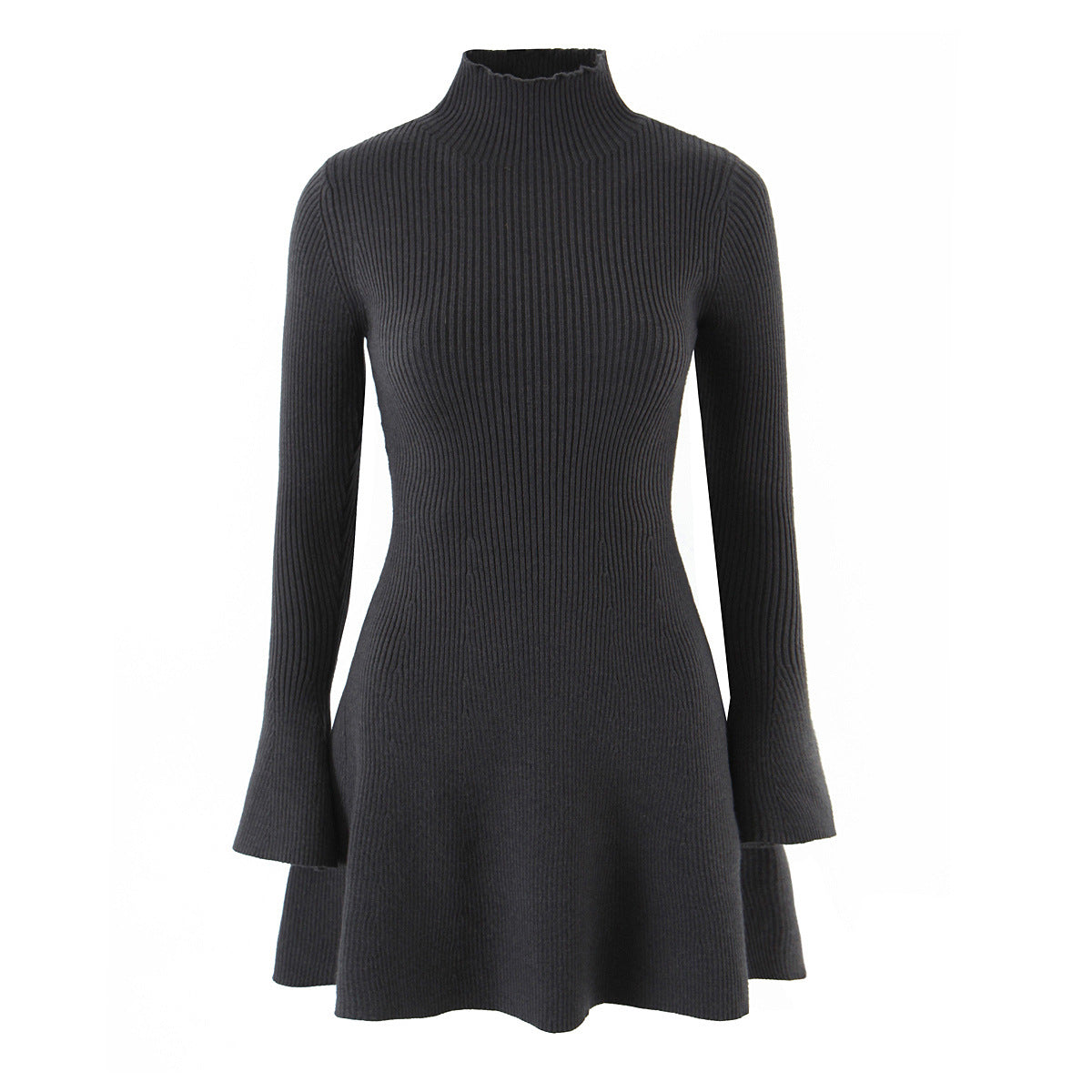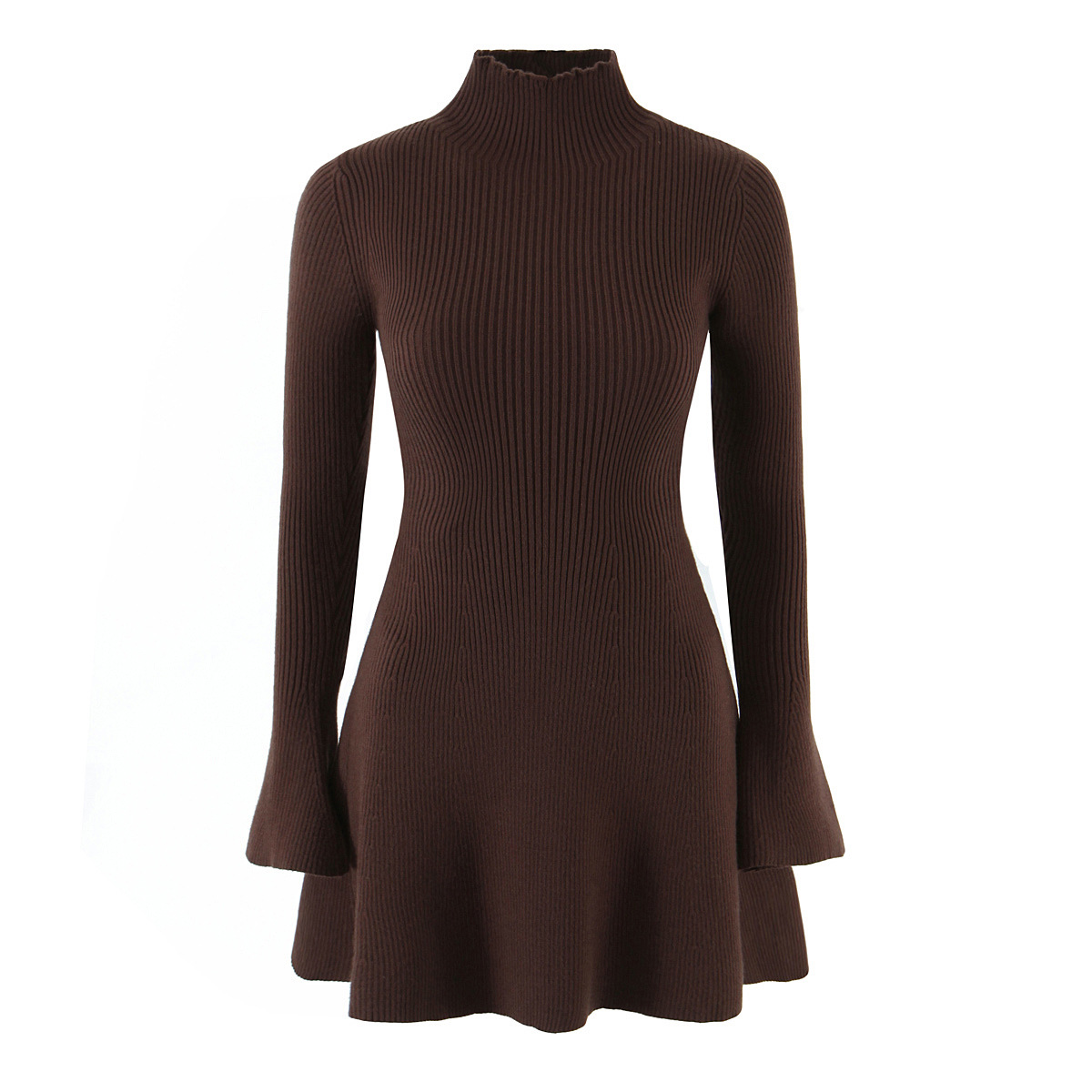 Women's Ribbed Knit High Neck Long Sleeve Dress