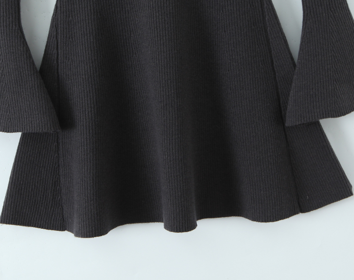 Its flattering fit-and-flare silhouette is complemented by long sleeves with delicate bell cuffs and a sophisticated high neckline.