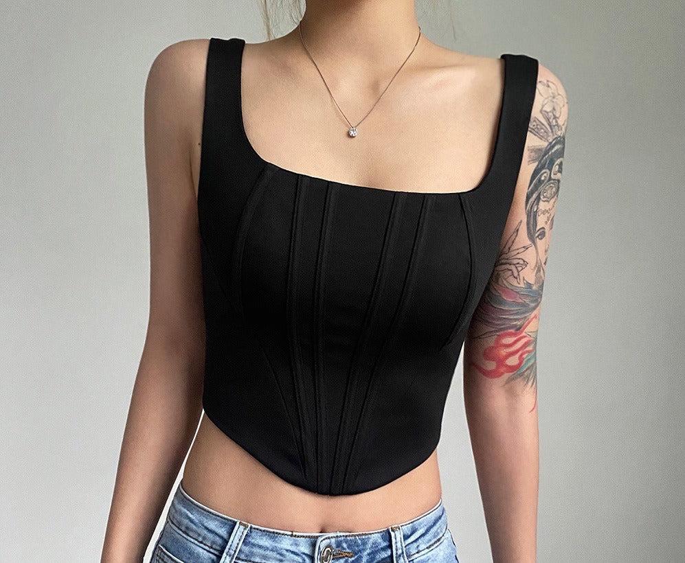 Women's Solid Colour Sexy Crop Corset Style Top Square Neck Fitted Short Vest
