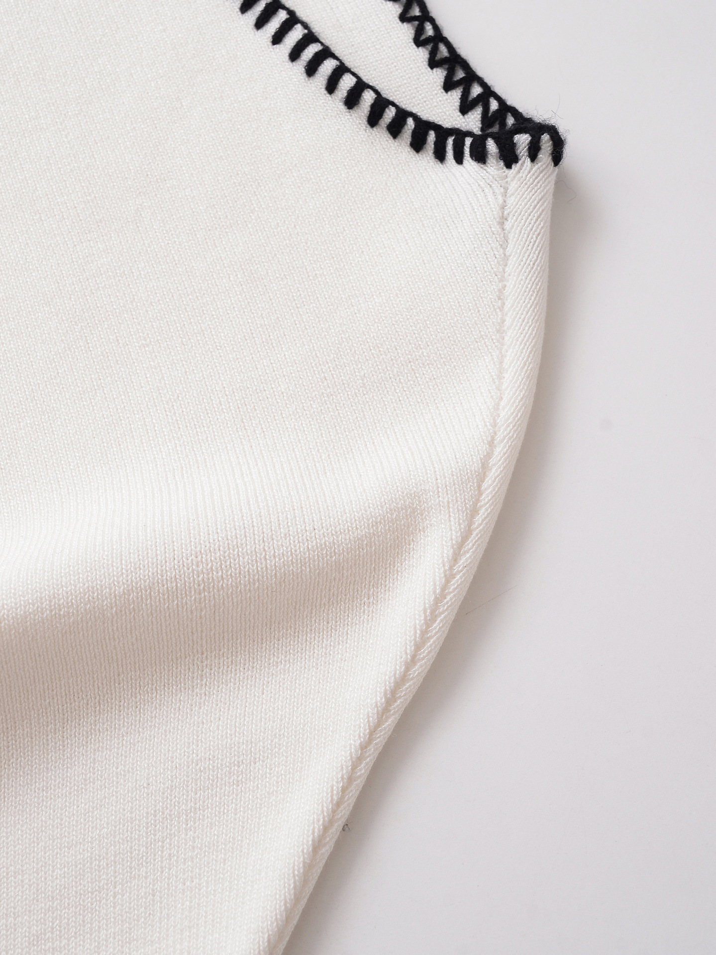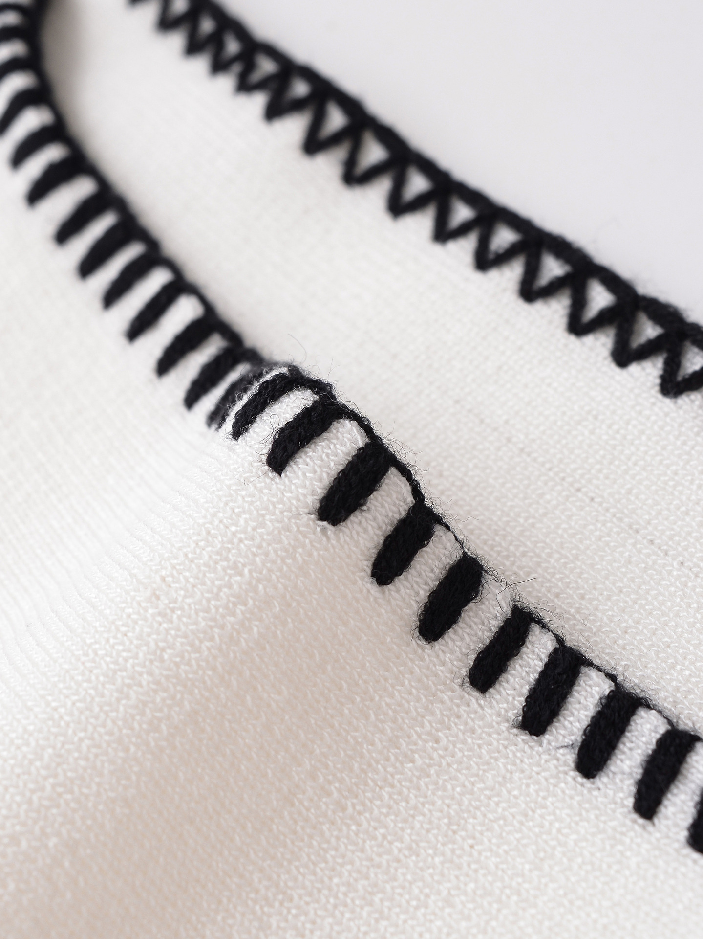 This women's white jumper with contrasting black edges combines elegance with comfort.
