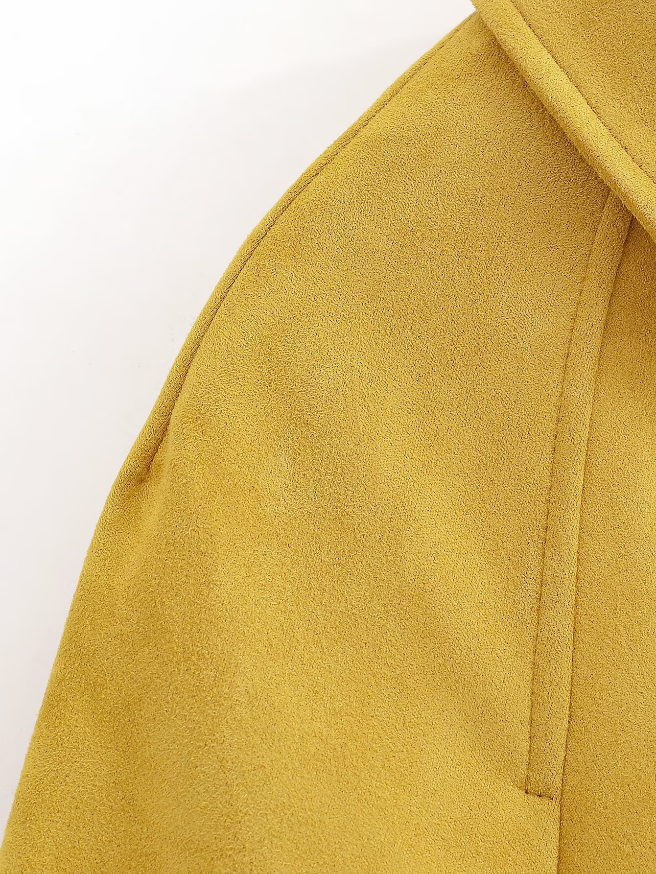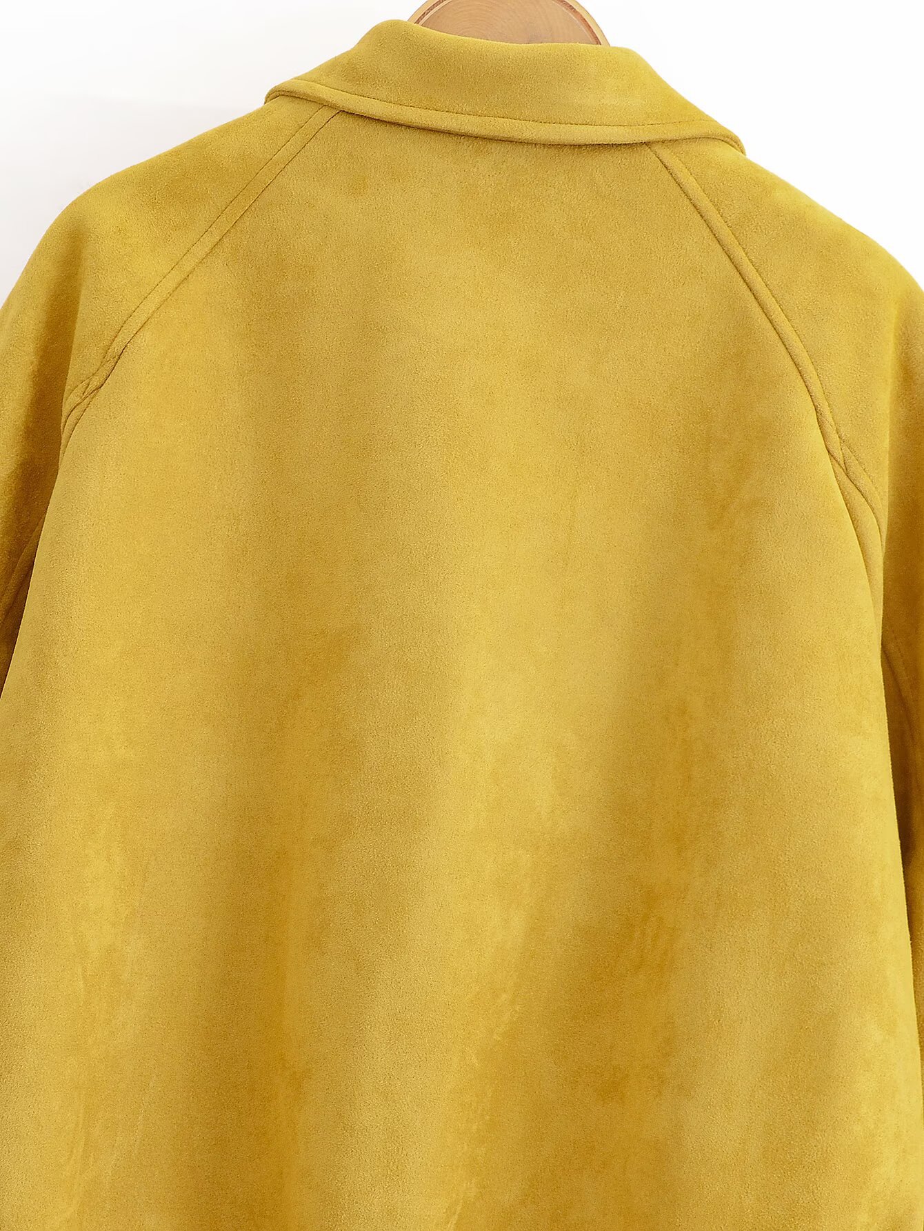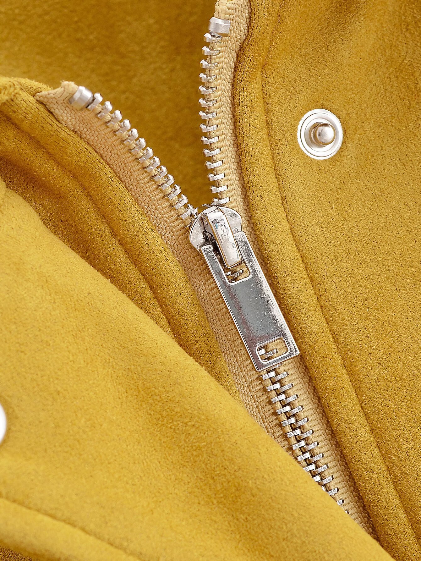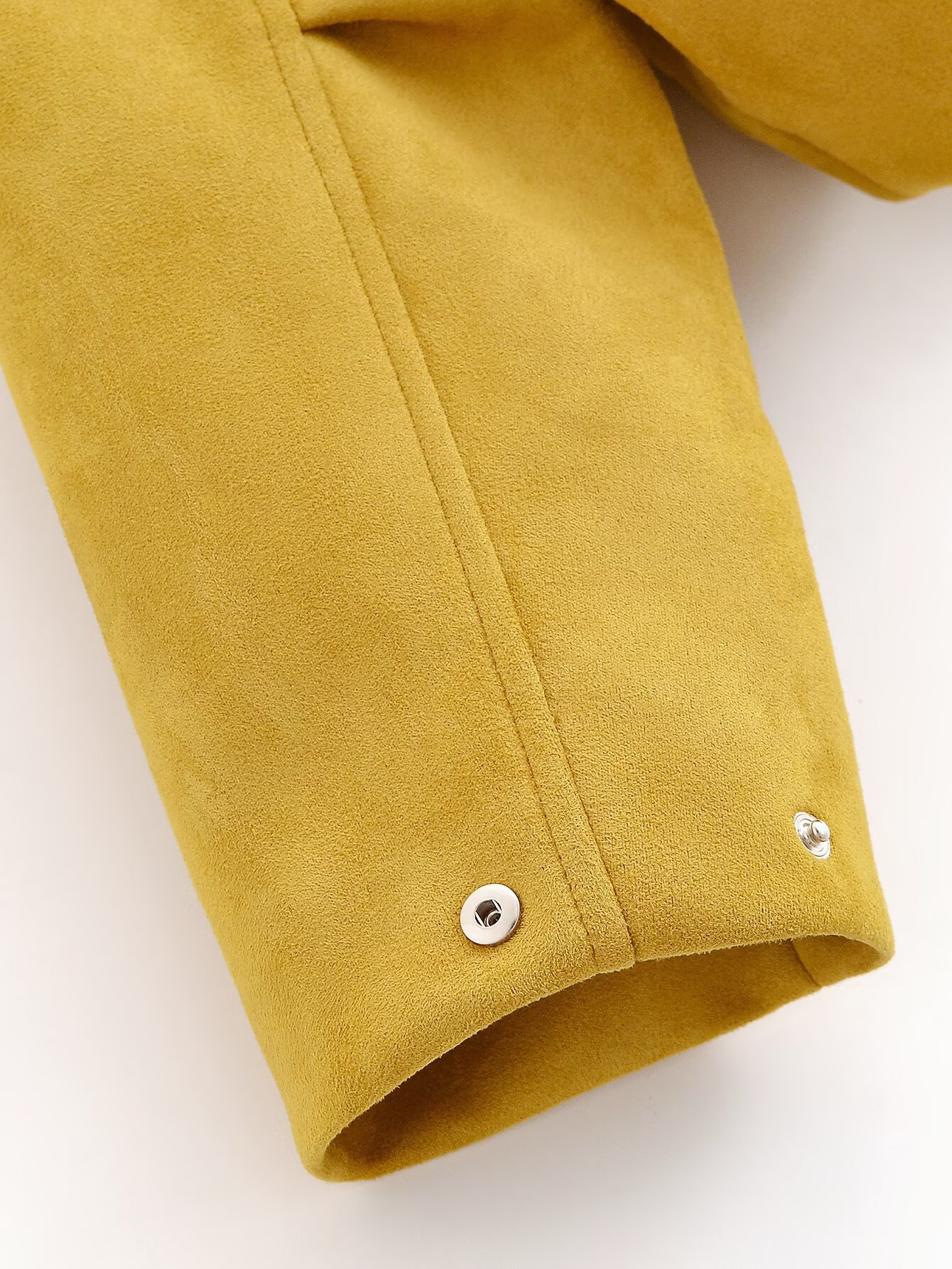 Infuse your wardrobe with vibrant style using this striking yellow faux suede jacket.