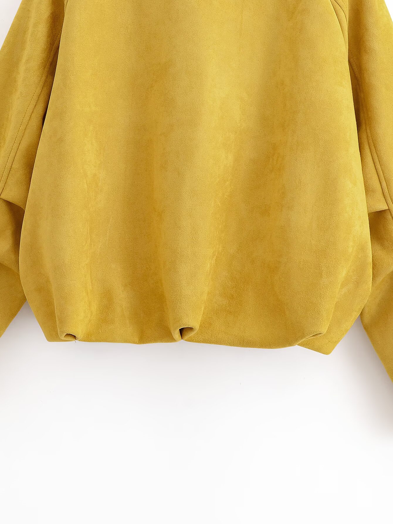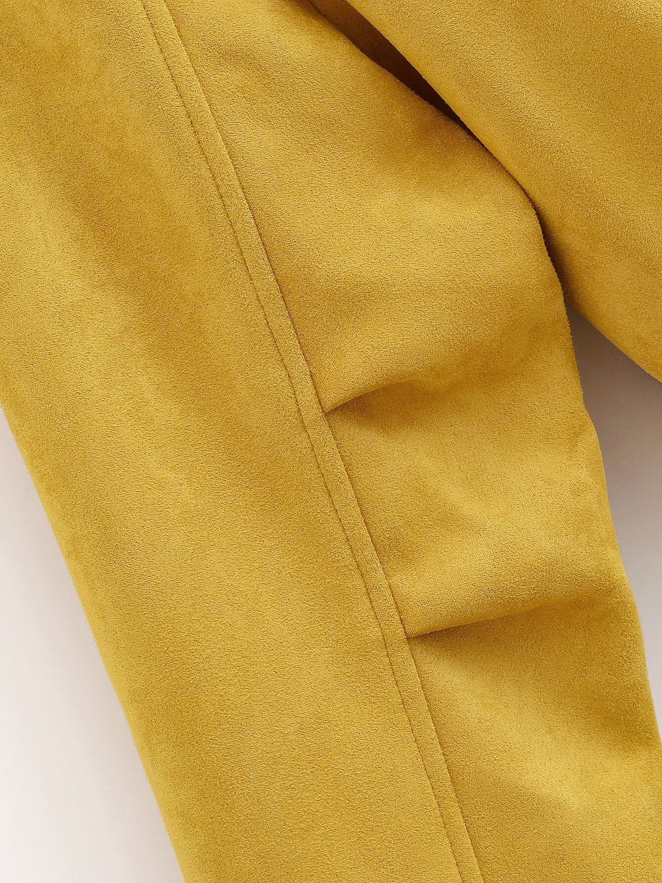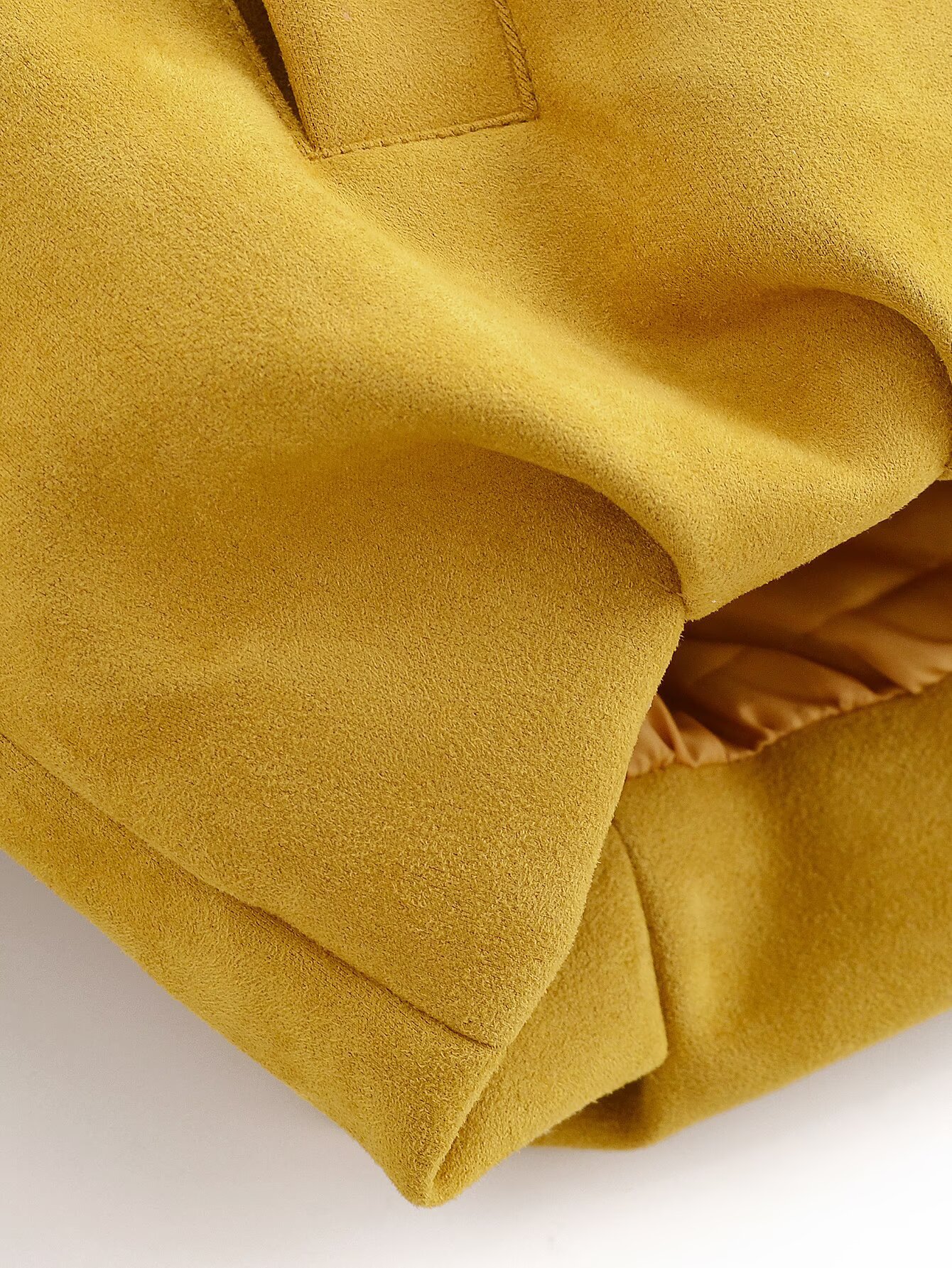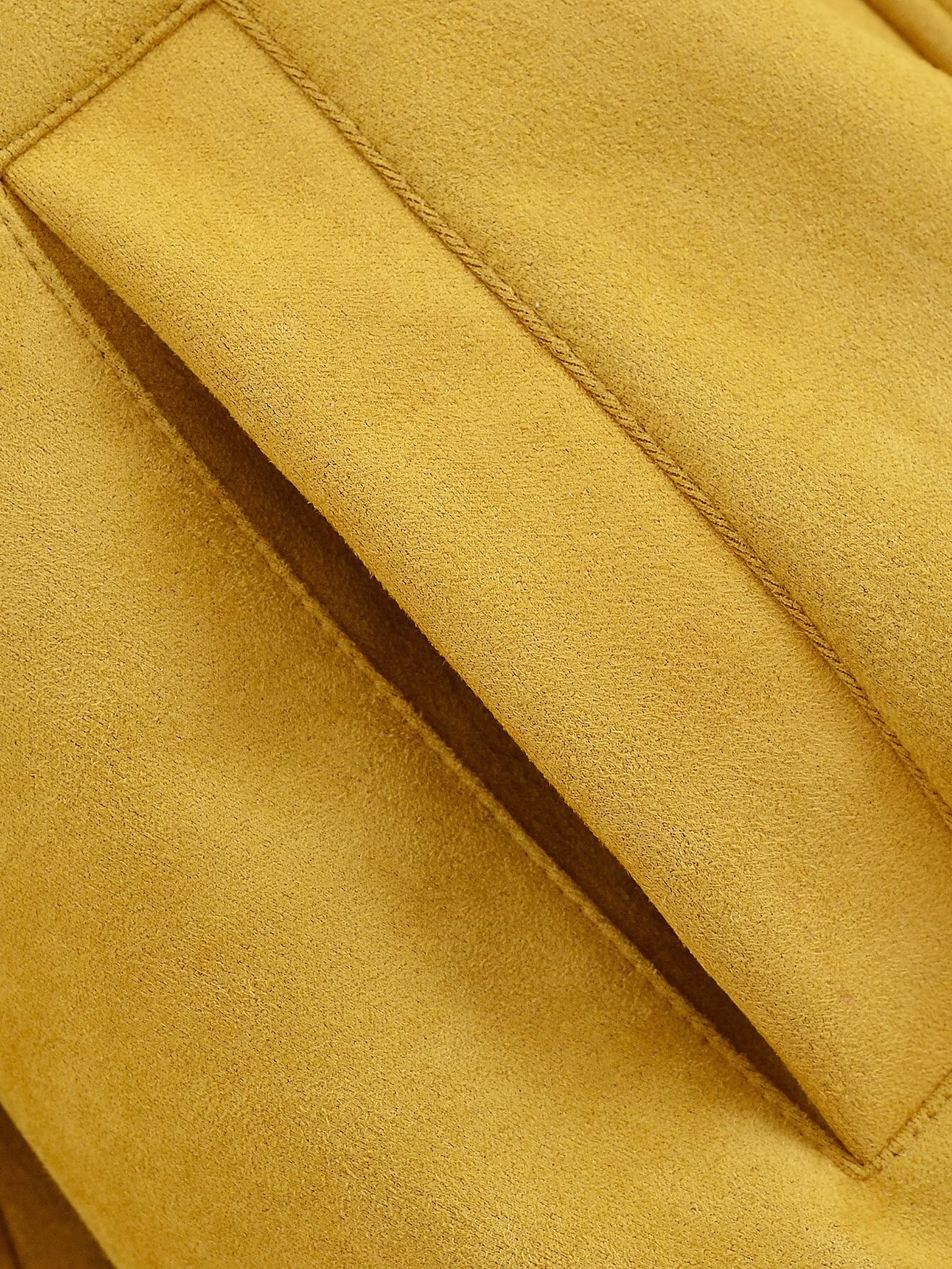 Infuse your wardrobe with vibrant style using this striking yellow faux suede jacket.